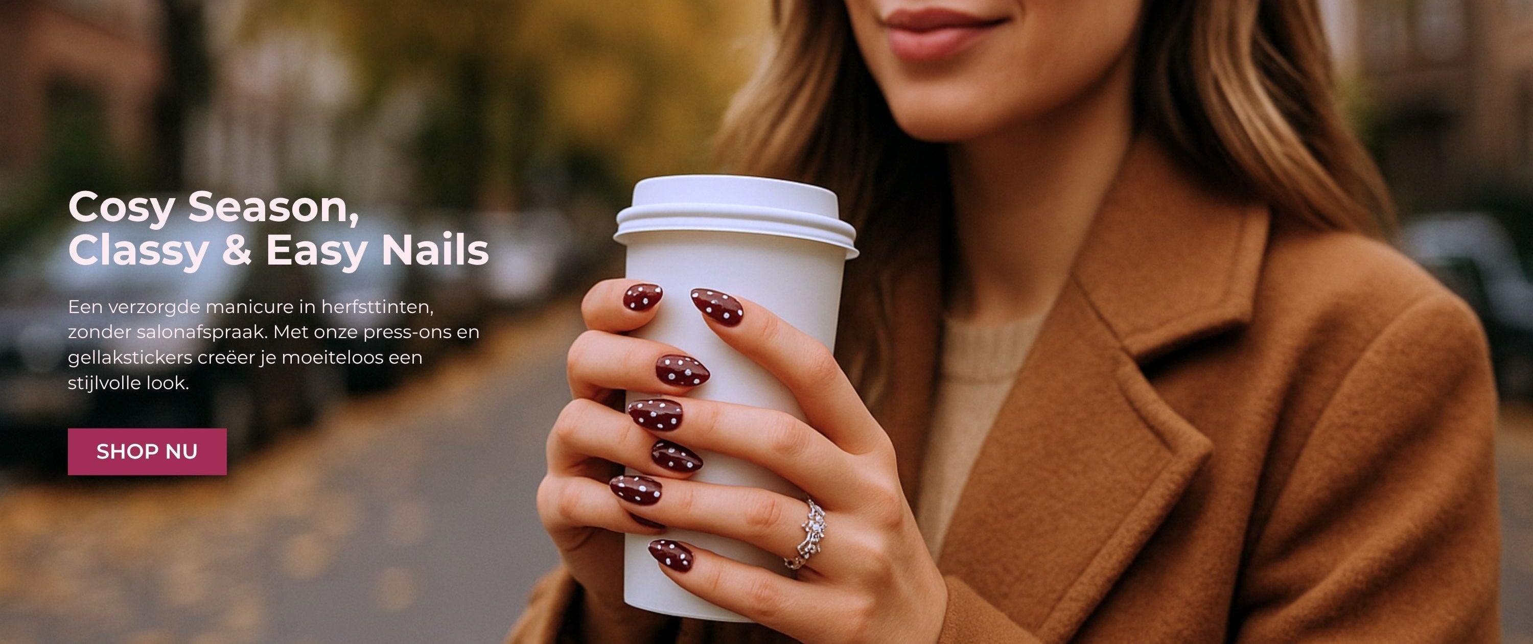 Creëer in een paar minuten een salonwaardige manicure vanuit je eigen huis of onderweg, met onze press on nagels of gellakstickers. Beide opties zijn snel en eenvoudig aan te brengen en blijven 2 tot 3 weken zitten.